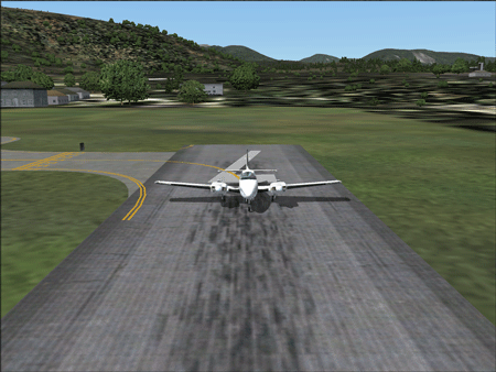 Cashmerského letiště. Dráha je pouze 1 800 stop dlouhá a vypadá to, že někdo