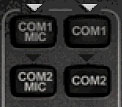 The Flight Simulator G1000 Audio Panel allows you to toggle your microphone and headset between the COM1 and COM2 radios, and to listen to the audio identifier of navigation aids.